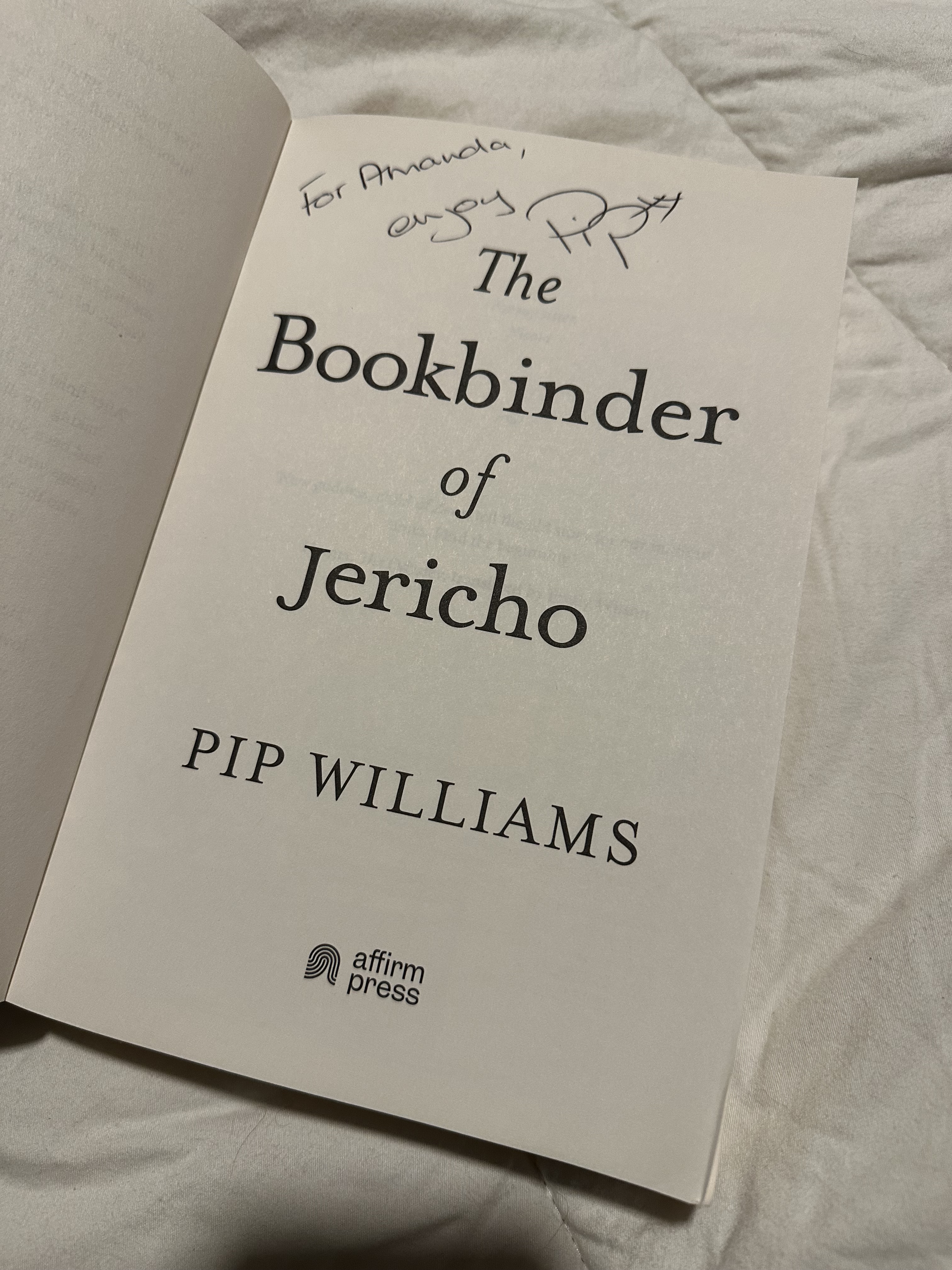 After finishing Pip Williams wonderful novel, The Dictionary of Lost Words, I went with my writer buddy, to a launch of Pip’s new book, The Book Binder of Jericho.